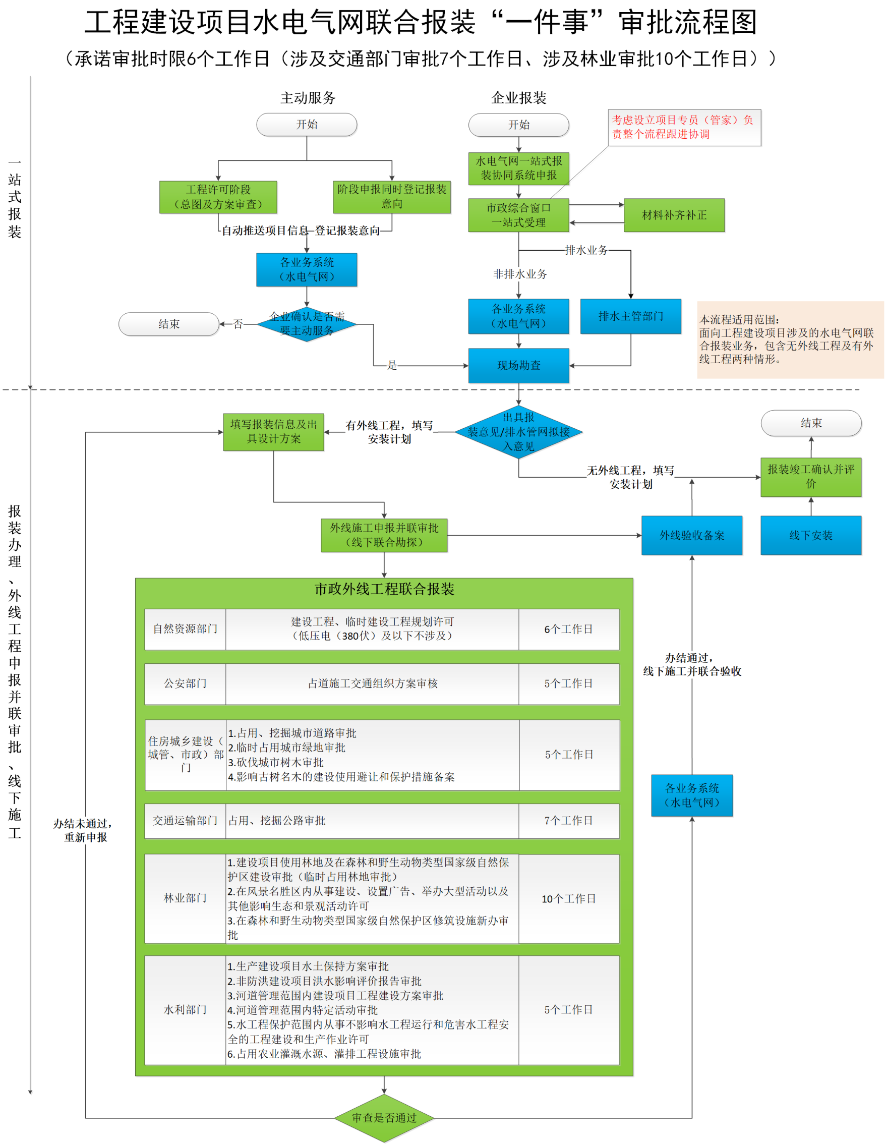 (一)工程建设项目申报水电气网报装业务,按附件4-1《工程建设项目水电气网联合报装“一件事”审批流程图》办理。