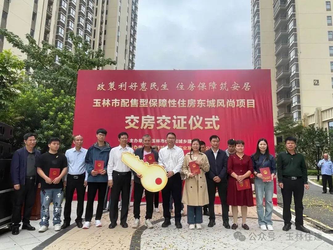 10月25日,玉林市配售型保障性住房东城风尚项目现场喜气盈门,交房交证仪式顺利举行。市政府副秘书长朱小波、市住房城乡建设局局长梁武波与不动产登记中心、银行代表及业主代表共同见证了这一重要时刻。